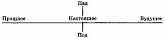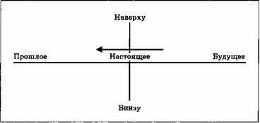 Каждый момент человеческой жизни может быть представлен таким образом. Точка пересечения вертикальной линии с горизонтальной — это «сейчас». Но эта точка становится «сейчас» в полном смысле, только когда человек сознателен. Когда человек отождествлен, то для него нет «сейчас». Если он спит во Времени, вынуждаемый спешить из прошлого в будущее, отождествленный со всеми вещами, то в его жизни нет «сейчас». Нет даже настоящего момента. Наоборот, все бежит, все меняется, все превращается во что-то иное; и даже давно предвкушаемый момент, которого человек ждал с большим нетерпением, уходит в прошлое, едва наступив. Только сознание того, что существует направление и оно имеет смысл, что представлено вертикальной линией, дает человеку ощущение «сейчас». Это ощущение иногда называют ощущением Вечности. Оно является предвестником ощущения настоящего «Я», ибо настоящее «Я» находится над нами, а не перед нами, во Времени. Вечность не соизмерима со Временем. Это означает, что никакая количественная величина Времени не может образовать Вечность, так же как длина, какова бы она ни была по величине, не может образовать ширину. Они относятся к разным измерениям. Но Вечность и Время встречаются в человеке, в той точке, которая называется «сейчас». На этой вертикальной линии нет прошлого, как нет и будущего. Что появляется вместо Времени, вместо настоящего, прошлого и будущего? Вместо времени появляется состояние, уровень или качество. Вертикальная линия показывает определенное положение не относительно времени (например, год 1942) или возраста (например, возраст 20 или 50 лет), а относительно шкалы бытия, уровня понимания и качества знания. Все во Вселенной, видимой и невидимой, познанной и непознанной, находится в какой-то определенной точке на этой вертикальной линии, потому что все имеет свой уровень относительно нее, обусловленный, так сказать, плотностью — как предметы, плавающие в море. Вся эволюция, в истинном смысле, состоит в том, чтобы перейти в точку, расположенную выше по этой шкале. Шкала — это лестница. Во всех диаграммах, которые мы будем изучать, присутствует эта идея Вселенной в виде лестницы или шкалы; поэтому необходимо обрести предварительное представление о важности этого вертикального направления, которое находится не перед нами, в будущем времени, в следующем году или в следующем веке, не в Пространстве или Времени, а в другом измерении — т.е. над нами. Это становится особенно важным, когда человек начал работать над собой и понимать, что значит отделять себя от негативных состояний и что значит пребывать во сне. Есть два вида влияний, которые могут дойти до нас в любой момент. Одни из них приходят из горизонтальной линии, представляющей Время. Это влияния прошлого, которые постоянно входят в нашу жизнь, а также влияния, которые приходят из будущего — т.е. будущего, представленного на линии Времени, вдоль которой мы движемся. Но есть и другие влияния. Когда человек помнит себя, он поднимает себя вверх по вертикальной линии и испытывает на мгновение новое состояние. Это происходит, когда человек уже не только думает о самовоспоминании, но и делает это на самом деле — когда он уже не пытается сбежать от негативных состояний, просто перестав думать о них, а останавливает все свои мысли и поднимает себя в состояние самовоспоминания. 