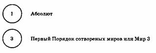 Это первый акт творения, представленный в виде диаграммы. В действительности, это живой процесс, непостижимый и вечный. Под термином Мир 3 подразумевается первый уровень творения, подчиняющийся трем законам или волям. Этот мир создает в свою очередь другой порядок миров ниже себя, у которого есть свои собственные три силы. Он называется мир 6, так как подчиняется еще и трем волям или законам, действующим на него из Мира 3. Этот процесс творения продолжается. Следующий порядок миров — это Мир 12, на который действуют три собственных силы, шесть сил, происходящих из Мира 6 и три силы непосредственно из Мира 3. Похожим образом создаются и следующие три мира, формируя шесть порядков миров или шесть нисходящих уровней творения ниже Абсолюта, связанных между собой законами.