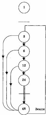 Результат этого выражается в том, что вещи, которые начинаются в жизни с одной целью, могут привести к совершенно противоположным результатам — например, общество мира может стать источником войны. Второй фактор, препятствующий полному и успешному развитию вещей, это проверка, сужение или точка замедления между нотами Ми и Фа. Когда что-то развивается до стадии Ми, то оно неизбежно сталкивается с преградой, и если извне не приходит шок, то октава не продолжается. То есть дальнейшая стадия развития не будет достигнута. Помимо тенденции к отклонению, есть еще и точка, где возникает задержка или проверка, и она называется место шока. Все развивается по стадиям, но оно может развиваться правильно, только если оно реализует Закон Семи. Отклонение — это не следование Закону, и остановка в месте шока — это неудача. Каждая нота должна прозвучать во всей полноте на каждой стадии. К примеру, чтобы говорить, читать и писать, ребенок должен выучить буквы, прежде чем учить слова. Он должен выучить слова, прежде чем он выучит фразы, и тогда он получит шок из жизни, потому что он окружен людьми, которые говорят, пишут и читают. Тогда он перейдет к Фа. Но если он не озвучил До должным образом — т.е. если он не выучил буквы, или если он не озвучил достаточно сильно Ре — т.е. если он не выучил слова, состоящие из букв, должным образом и так далее, то его способности говорить, читать и писать будут соответствующим образом ограничены. Вы все знаете любителя, который не выучил свой предмет как надо, а с другой стороны, мы все понимаем, что значит быть сведущим человеком. Когда человек развивает свое мастерство через правильные стадии и проходит через шок, который дает ему его мастер, к полному мастерству, то это представляет собой развитие, проходящее в гармонии с Законом Семи и правильно скрепленное. Что касается чудесного развития человека из одной клетки, то в этом случае шок подается в определенных точках в поступательной эволюции различных частей тела и всего тела в целом. Одна клетка, разделяясь на две (а две на четыре, а четыре на шестнадцать, пока не будет пройдено 50 стадий деления в течении 9 месяцев) производит 100 000 миллионов живых клеток. Этот процесс деления обусловлен Законом Трех. Упорядочивание, расстановка и интеграция живых клеток всего развивающегося человека с помощью шока, который подается в определенных точках, контролируется Законом Семи. Первый Шок в первой октаве всего процесса дается, конечно, в момент оплодотворения. Есть много способов увидеть, как вещи доходят до определенной стадии и не идут дальше без помощи со стороны — т.е. без шока. Вы когда-нибудь думали о том, что природа доводит вещи до определенной точки и останавливается? Но человек может сам дать шок и повести эти вещи дальше в развитии. Подумайте, к примеру, о пшенице: буханки не растут в поле. Подумайте о том, как человек использует сырье. МАСШТАБЫЧасть IX. — Давайте поговорим о диаграммах. Диаграмма — всего лишь средство для понимания. Она похожа на карту. Карта — это своего рода диаграмма страны, показывающая расположение вещей и их соотношение. Весь Луч Творения, включая Октаву Солнца, это карта. Но это очень странная карта. Обычно карты бывают того или иного масштаба. У вас может быть карта вашего города, изображающая положение вашего дома. Или у вас может быть карта ваше