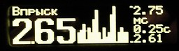 Наличие функции самописца ("черный ящик") - график изменения мгновенных параметров записывается в память прибора и в дальнейшем может быть проанализирован на стоянке за последние 38 отсчетов. Пример: при установке обновления графиков в период 2 сек. можно на стоянке просмотреть изменение скорости за последние 76 сек. (38 х 2).